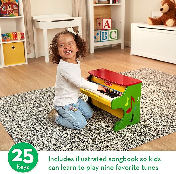 Melissa & Doug Learn-To-Play Piano With 25 Keys and Color-Coded Songbook Toy Piano For Baby, Kids Piano Toy, Toddler Piano Toys For Ages 3+, Yellow/Brown,green