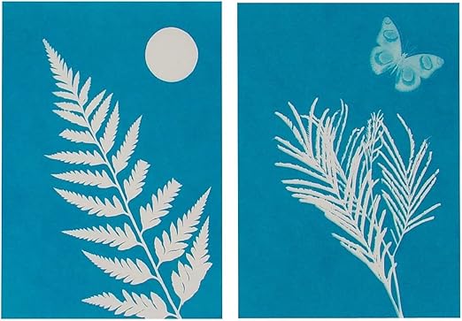 - Kit includes 3 blank note cards with envelopes, 2 preprinted stencil sheets, 2 frames, twelve 5"X7" sheets of solar print paper and instructions