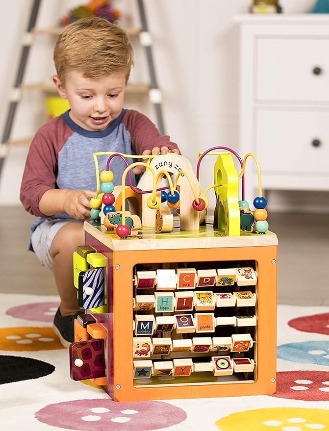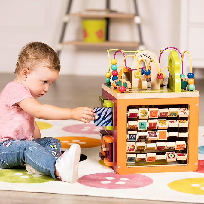 - DURABLE AND EASY TO CLEAN – The sturdy, die-cut activity wooden cube is made with industry-leading craftsmanship, another hallmark of B. Toys.