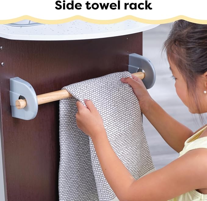KidKraft Uptown Espresso Wooden Play Kitchen with Play Phone, Chalkboard & Towel Rack, Espresso