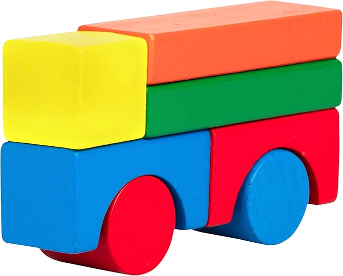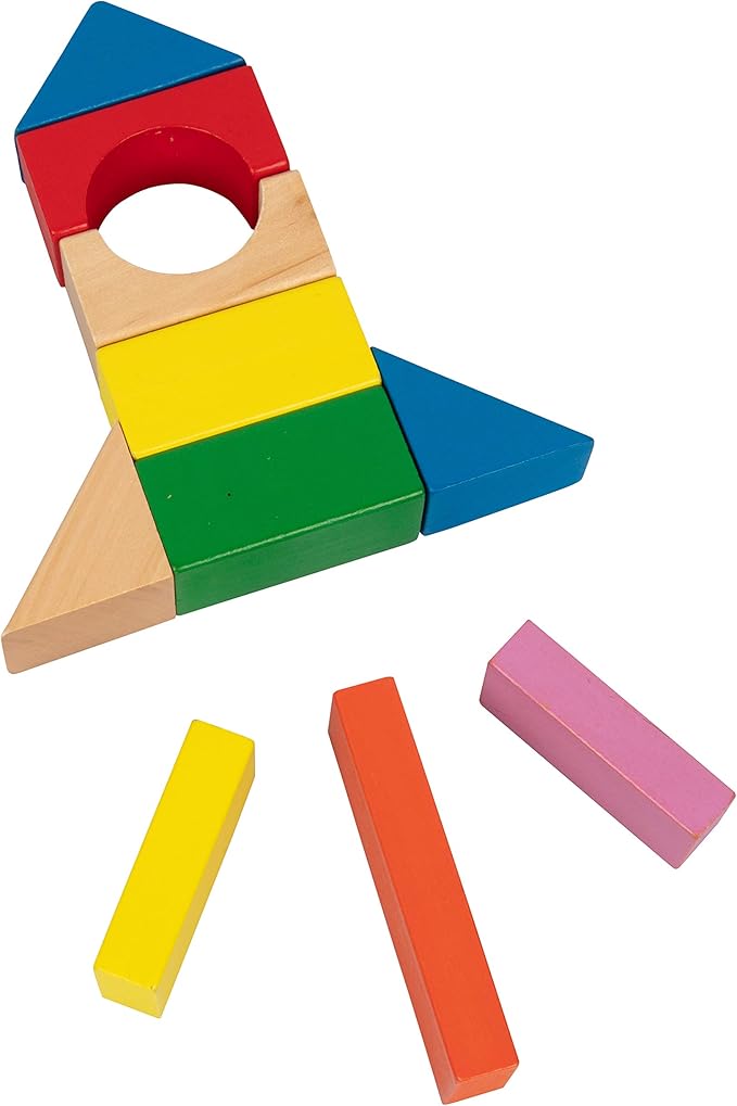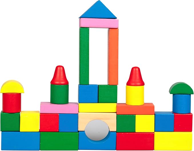 - 100 Rainbow Finished Smooth-Sanded Wood Blocks- 14 Different Shapes and 7 Different Colors