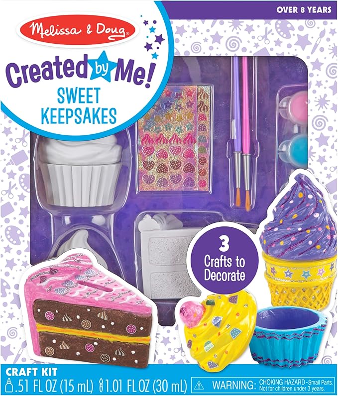 Melissa & Doug Sweet Keepsakes Craft Kit: 2 Decorate-Your-Own Treasure Boxes and a Cake Bank, One Size, Dyo