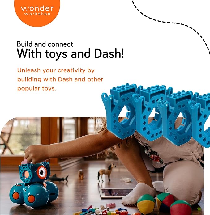 - GET CREATIVE: Dash and Dot can connect with your favorite toys using building brick connecting toys. Take on design challenges, plan your creations, and bring the toy robot to life through coding.
