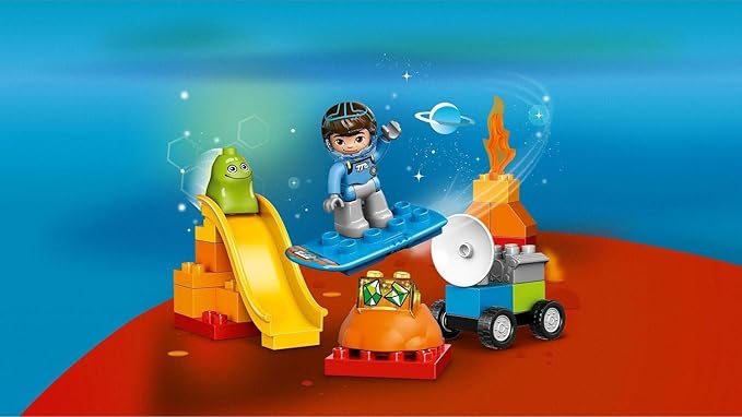 - Includes a LEGO DUPLO figure: Miles plus Blodger Blopp. Features a playground slide, space crater brick and a buildable discovery rover with engine and turning radar.