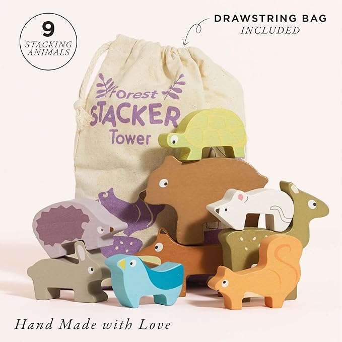 - BEAUTIFULLY CONSTRUCTED - Classic style wooden toy. Le Toy Van makes beautifully crafted toddler toys like this delightful animal stacking toy based upon forest animals. Includes 9 individual animals and a handy fabric bag for travelling. Provides a great hands-on learning experience