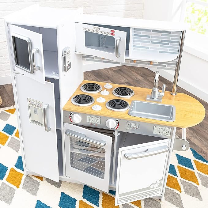 KidKraft Uptown White Wooden Play Kitchen with Play Phone, Chalkboard & Towel Rack, Gift for Ages 3+