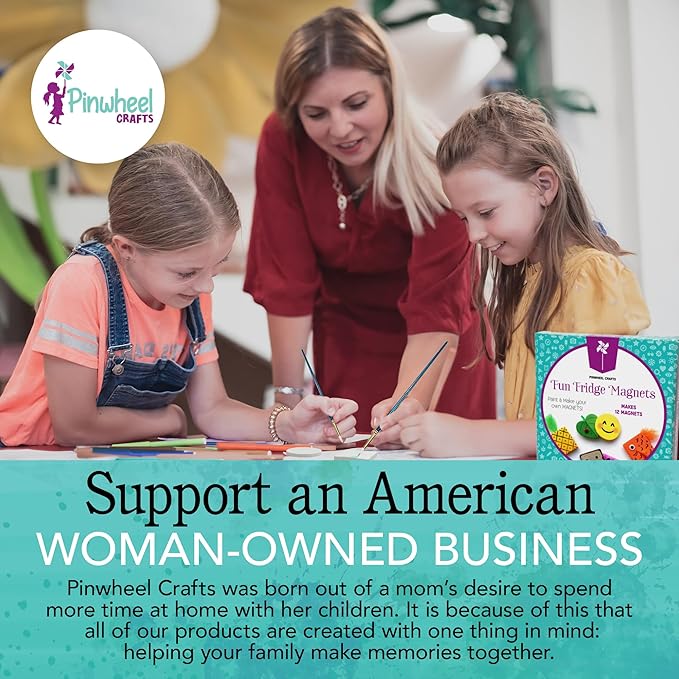 Pinwheel Crafts Magnetic Mini Tile Art Kit - DIY Kids Arts and Crafts Painting Kit - Decorate Cute Refrigerator or School Locker Magnets, Mini Art Items - Paint for Party Favors or Birthday Gifts