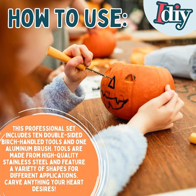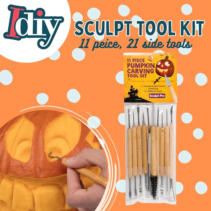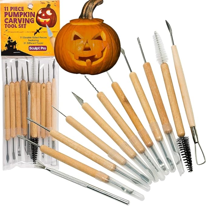 - Halloween Pumpkin Carving Kit - 11 double sided pieces (21 Tool Set) - Deluxe carving and cutting supplies will create impressive patterns for spooky Jack-O-Lanterns and pumpkin decorations