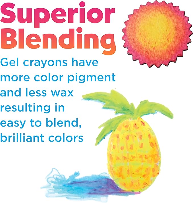 • 6 NEON GEL CRAYONS: Unleash your creativity with 6 electrifying neon gel crayons! Bursting with vibrant pigments, these crayons make artwork pop on smooth surfaces. Their ultra-smooth texture ensures effortless blending, bringing art to life in neon colors, perfect for inspiring preschoolers and enhancing toddler art supplies for fun and engaging toddler crafts ages 3-4+