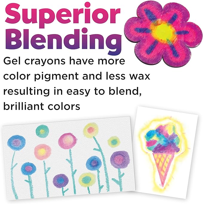 • KIDS DRAWING SUPPLIES: Perfect for young artists, these easy-to-use gel crayons are designed for comfort and versatility, enhancing any kids drawing supplies while inspiring creativity. Packaged in a durable, clear case for on-the-go fun, this set guides kids in exploring a new art medium. Ideal for toddler coloring and arts and crafts for kids ages 3-4+