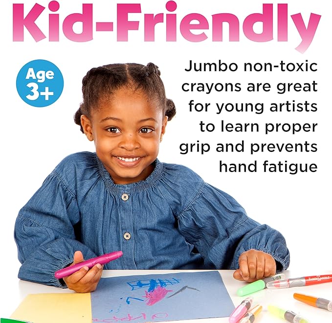• TWISTABLE CRAYONS FOR TODDLERS: Perfect for toddlers, these twistable crayons feature a soft, buttery texture for easy application on smooth surfaces. The jumbo size fits comfortably in small hands, promoting a proper grip and reducing hand fatigue. Ideal for toddler art supplies, this thoughtful design helps kids develop essential motor skills and creative confidence