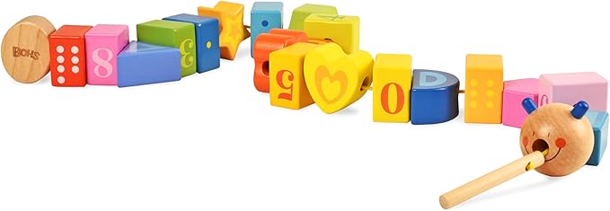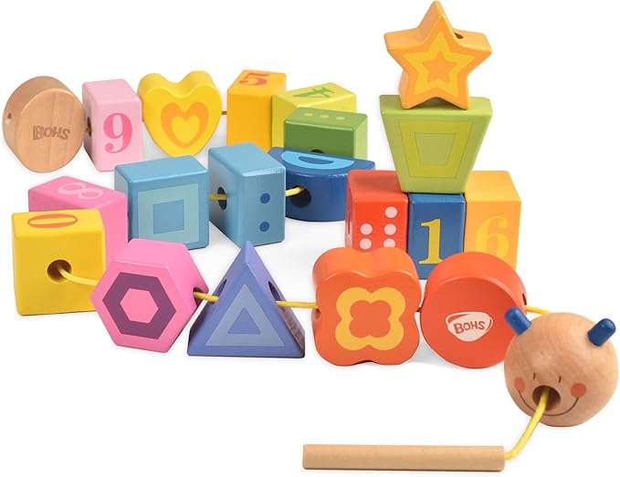 BOHS Caterpillar Lacing Blocks - Threading & Stacking - Toddler Learn Counting, Numbers and Shapes- Baby Kids Fine Motor Skills Toys