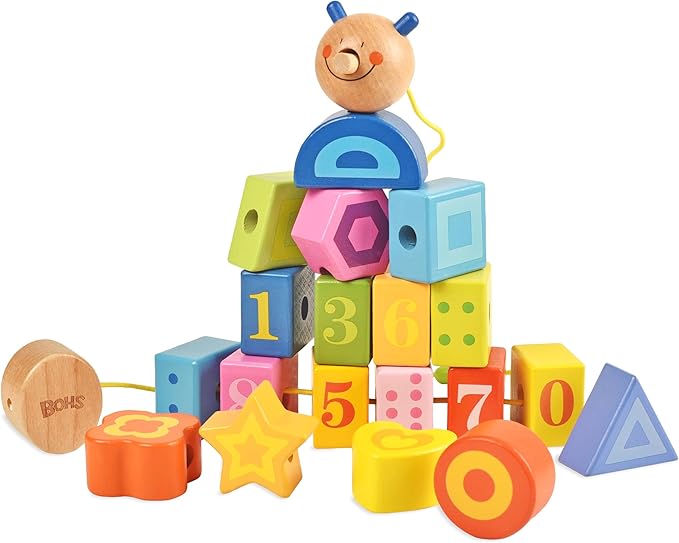 - Geometric Shapes & Colors Recognition - Contains 20 distinct shape blocks that help toddler boys and girls learn color recognition and geometry shapes, as well as a rope with a wooden stick for easy hold and threading.