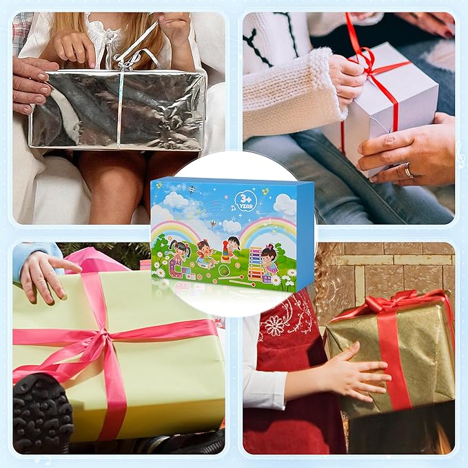 • Gift Idea For Kids Package Include:1 x Xylophone,2 x Maracas,2 x Nylon Wrist Bell,1 x Handheld Sleigh Bells 5 Large Bells,1 x Castanets,1 x Rainbow Blocks,1 x Drum,2 x Xylophone Mallets,1 x Carrying bag