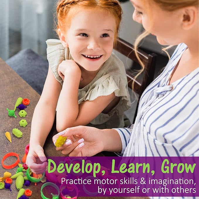 • 😊【DEVELOP, LEARN, GROW】: For young kids, jewelry making kits are an important early learning toy that helps them practice fine motor skills and hand-eye coordination, as well as develop creativity and imagination. Grown-ups can join in the fun, and strengthen their bond with the child through interactive play & communication.