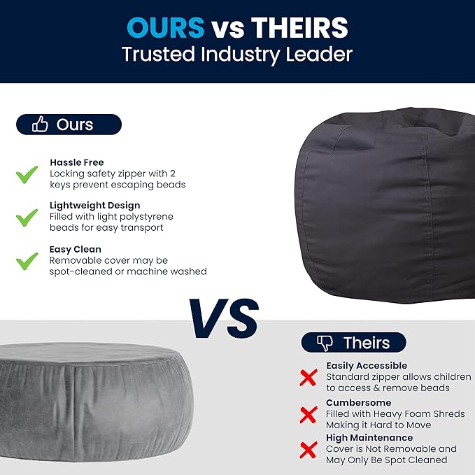 - COMFORTABLE AND DURABLE: Refillable, breathable polyurethane foam beads and soft cotton twill upholstery provide superior comfort and support, and the lightweight design makes the chair easy to move