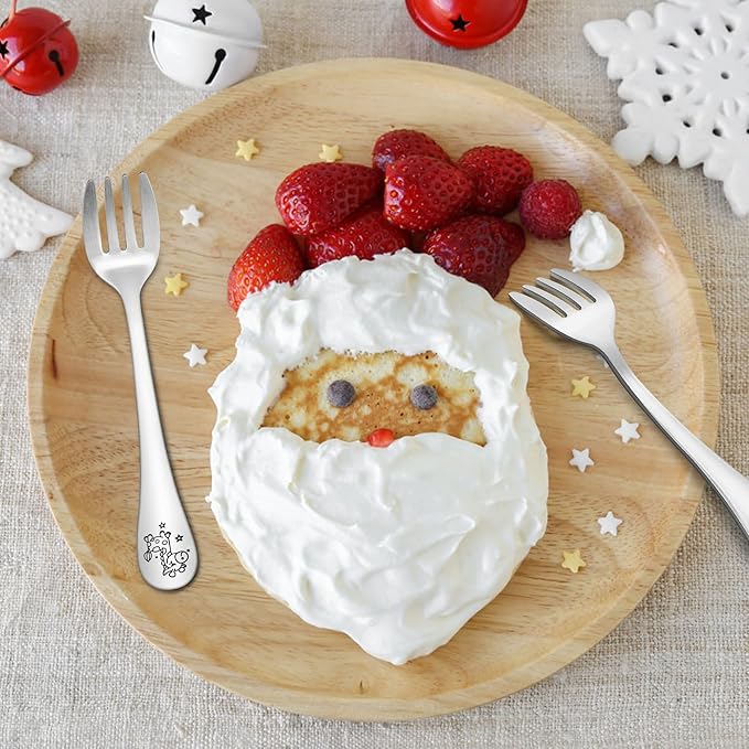 - √ NICE SIZE - This kids fork set is perfect size and weight for balanced grip, Perfectly fits kids small fingers, Stainless steel material makes it look like grown-ups forks to encourage kids to independently eat