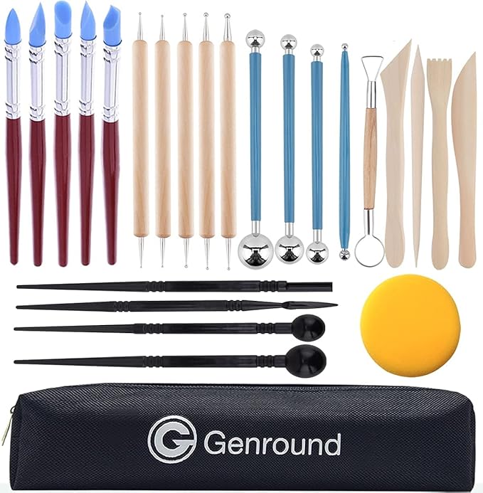 - Included Components : 5x double sided dotting tools, 5x rubber tip pens, 4x ball stylus, 4x plastic modeling tools, 5x wooden clay carving tools, 1x sponge, 1x storage case 5x double sided dotting tools, 5x rubber tip pens, 4x ball stylus, 4x plastic modeling tools, 5x wooden clay carving tools, 1x sponge, 1x storage case