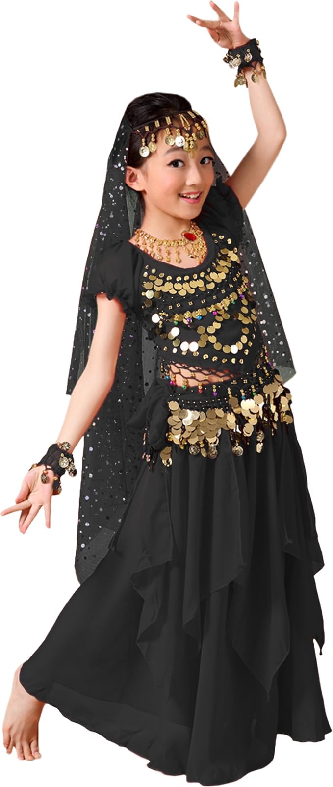 - package include:all accessories shows on the picture (top/skirt/hipscarf/veil/bracelets/necklace)