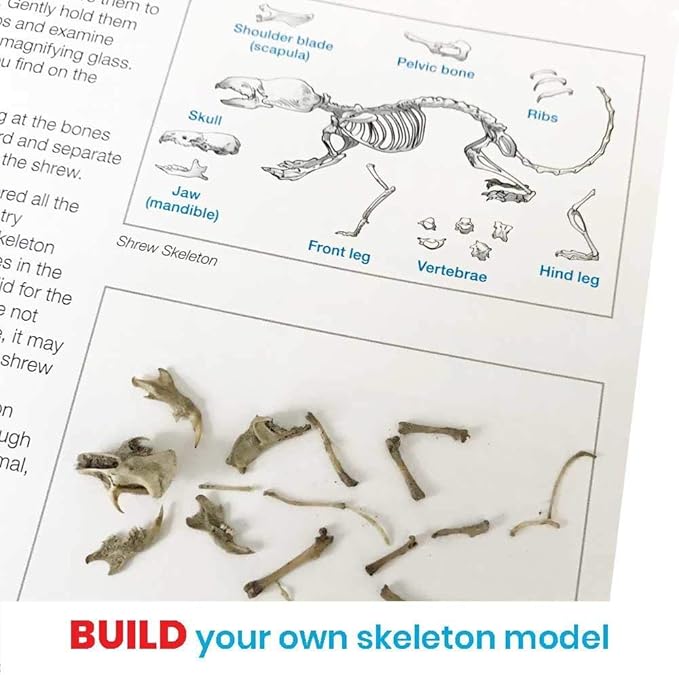 - EDUCATIONAL TOYS: Welcome to the exciting world of biology! Use the included lab tools to dissect real owl pellets, identify animal bones, assemble real animal skeletons, and conduct experiments to turn hard bones into rubbery bones.
