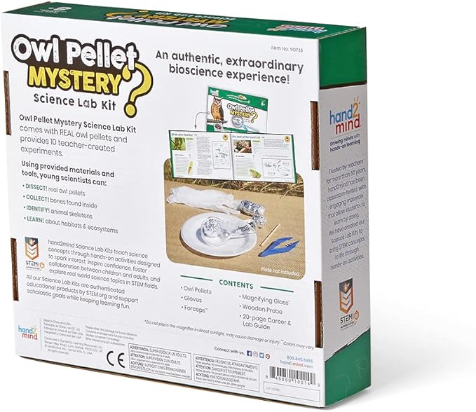 hand2mind Animal Science Kit for Kids 8-12, Kids Science Kit with Fact-Filled Guide, Learn About Animal Biology and Dissect Owl Pellets, STEM Toys, 10 Science Experiments