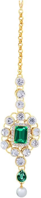 Aheli Kundan and Simulated Colored Stones Indian Ethnic Maang Tikka Necklace and Earrings Set Bollywood Festive Statement Jewelry Gift for Women