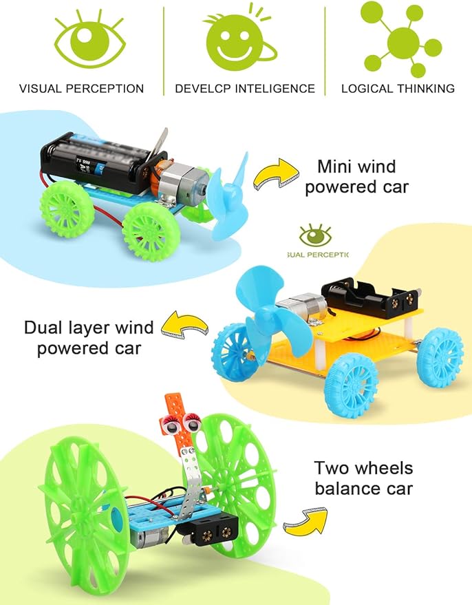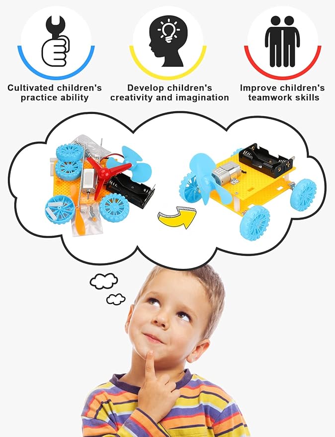 - Complete all in one kit - Contains 5 STEM projects for kids to build different kinds cars ,robot, mini generator,mini bubble machine. Novelty boy toys age 8-10 years old.