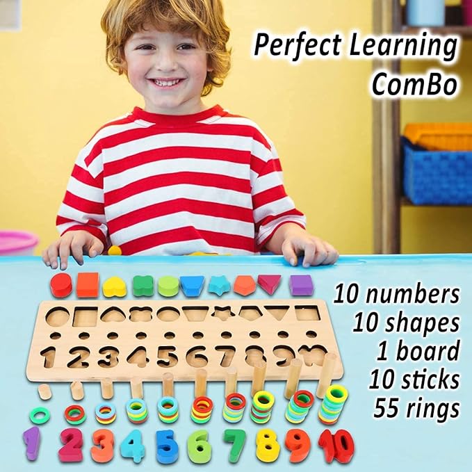 - 🌈【AWESOME GIFTS IDEA】Learning toys create fun time in sorting shapes, learning numbers. Wooden Montessori toys are great gift and educational toys for kids ages 3 4 5 years boys and girls at birthday party, Christmas, gifts and other holidays.