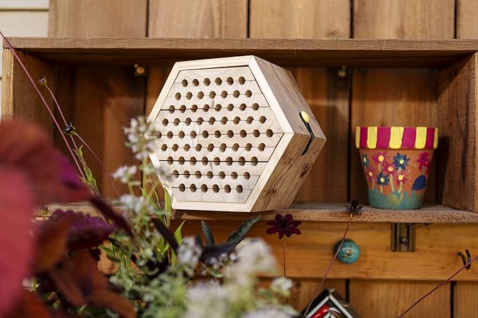 - Includes 7½" x 4½" x 6½" wooden bee habitat and instructions
