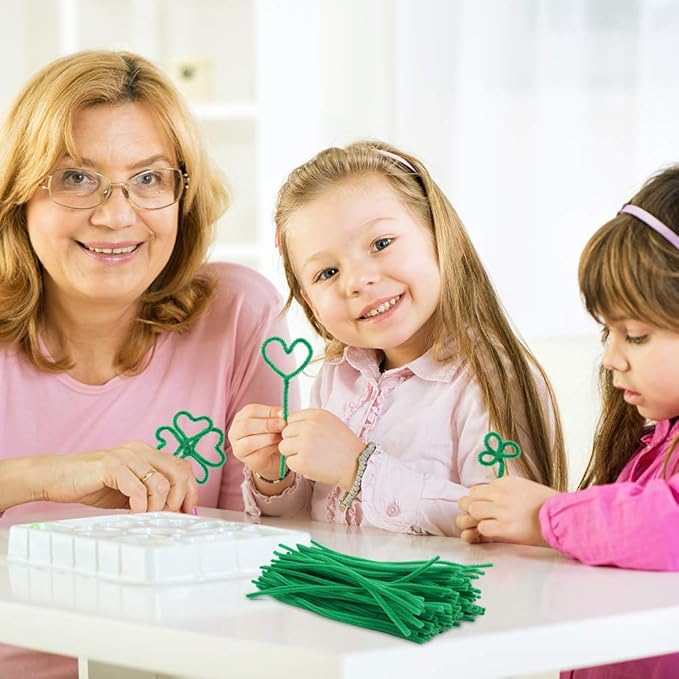Caydo 200 Pieces Green Pipe Cleaners Craft Chenille Stems for Kids DIY Art Craft Projects Christmas Decorations(6 mm x 12 inch)