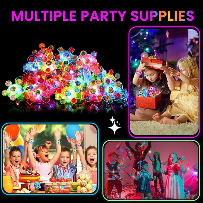 - These kids’ party favors come in a 24 pack of LED light up fidget spinner bracelets, available in multiple random colors and styles. Each bracelet combines a fun mix of a bracelet, LED lights, and a fidget spinner—perfect for keeping kids entertained.