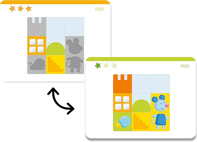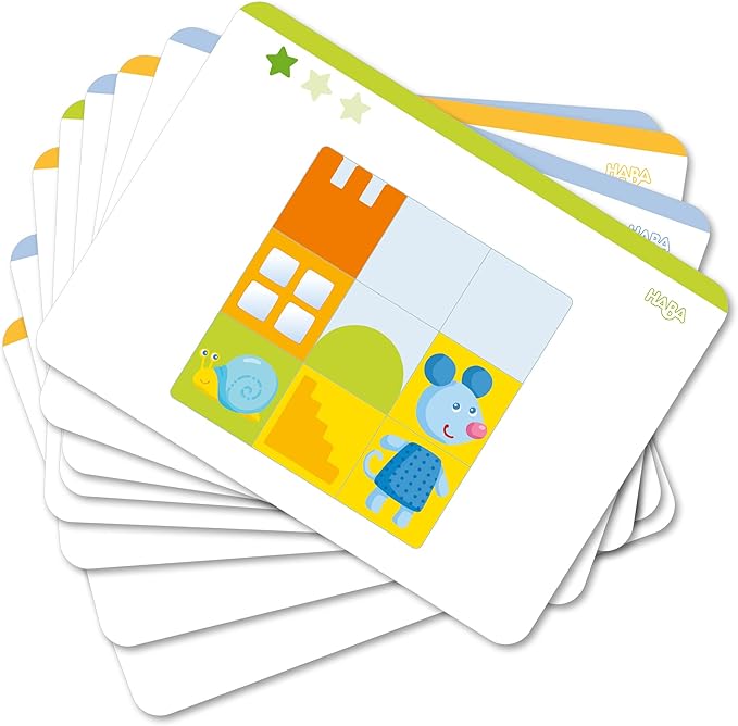 HABA Animal Squares Chunky Wooden Puzzle Building Blocks Arranging Game with Template Cards, Montessori Toys Toddler Puzzle Ages 2+ (Made in Germany)