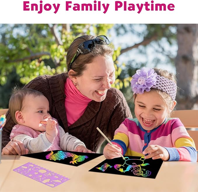 - Funny Toys and Games for Kids - Scratch art set easy to carry and use, great travel toy for kids. And it's a fun item for kids' indoor activities on rainy days and a must-have outdoor toy for family picnics outside.Keep your child busy and immersed in the world of art.