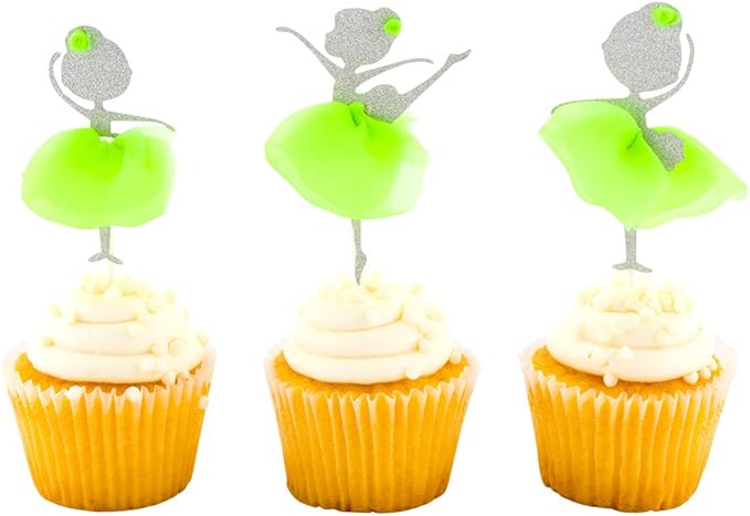 Restaurantware Top Cake 5 x 2.3 Inch Cupcake Toppers 10 Silver Glitter Detail Cake Toppers - For Events Durable Green Paper Ballerina Cake Toppers For Dessert And Party Decorations