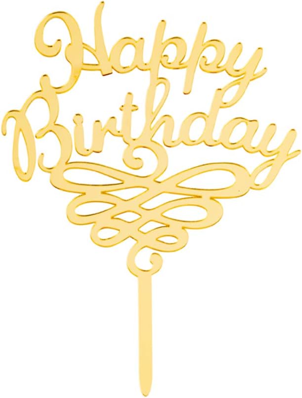 - PERSONALIZE YOUR PARTY: Make it a fun celebration with this happy birthday cake topper. The added stylized swirls add a touch of sophistication and are certain to put smiles on any face.
