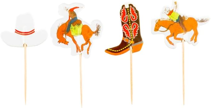- INCLUDES SIX 4-PIECE SETS: These 4-piece cake topper sets include two cowboys riding horses, a white cowboy hat, and a colorful cowboy boot. Perfect for decorating a festive birthday party!