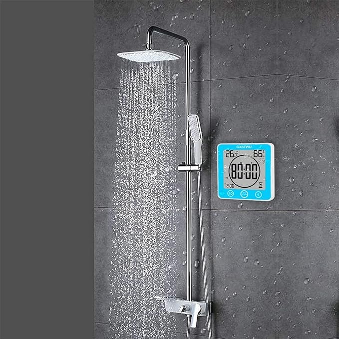 - 【Waterproof for Water Spray】Level IP24 waterproof and dustproof. Can withstand the spray from any direction(Do not put clock in water). Perfect for use in the showers, bathrooms, washroom, kitchen or next to the sink. Avoid placing clock timer directly in front of heavy water spray due to its touch screen sensitivity this may cause to activate or deactivate clock timer alarm. ★Please remove the protective film before use. ★