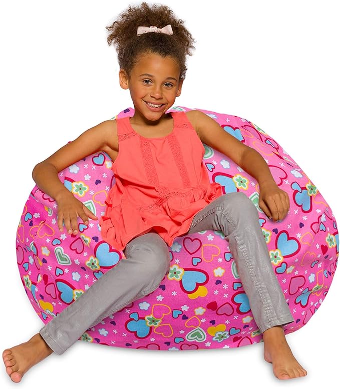 Posh Creations Bean Bag Chair for Kids, Teens, and Adults Includes Removable and Machine Washable Cover, Canvas Multi-Colored Hearts on Pink, 38in - Large