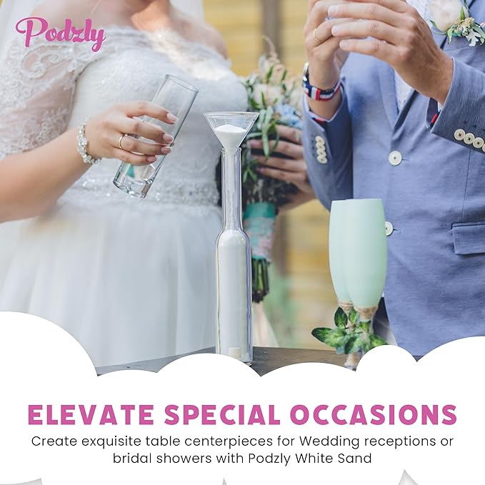 - GENEROUS 5lb BAG:Podzly's white sand comes in a clean and pure 5-pound bag. Easy to store and mess-free, it's perfect for creating timeless family heirlooms or as a thoughtful gift for friends and family on special occasions. Enhance your projects with Podzly's premium white sand!