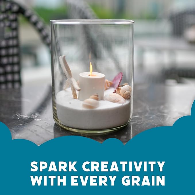- WIDE USAGE POSSIBILITIES: Experience endless possibilities with this decorative white sand. Great for sand painting, mosaics, crafts, school projects, floral arrangements, home décor, and candles. Layer it with other colors to achieve stunning designs. Ideal for wedding sand ceremonies and beach-themed parties.