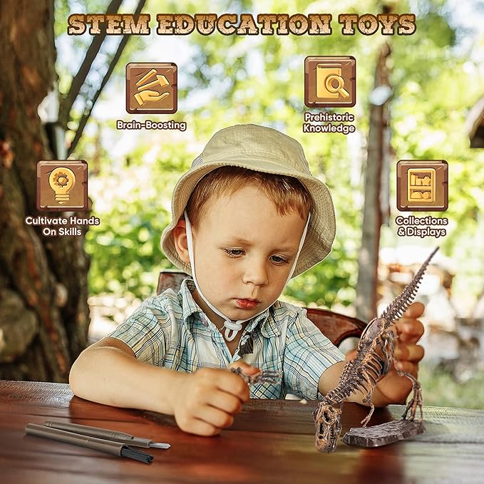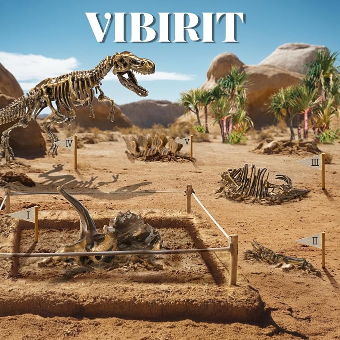 - Quality Educational Toys: VIBIRIT's Dinosaur Science Kit allows kids to take on the role of little archaeologists and learn about dinosaurs as well as prehistoric creatures while having fun by simulating the process of an archaeological dig.The detailed and realistic dinosaur skeleton model can also satisfy children's curiosity and stimulate their imagination and creative thinking as well as their interest in science
