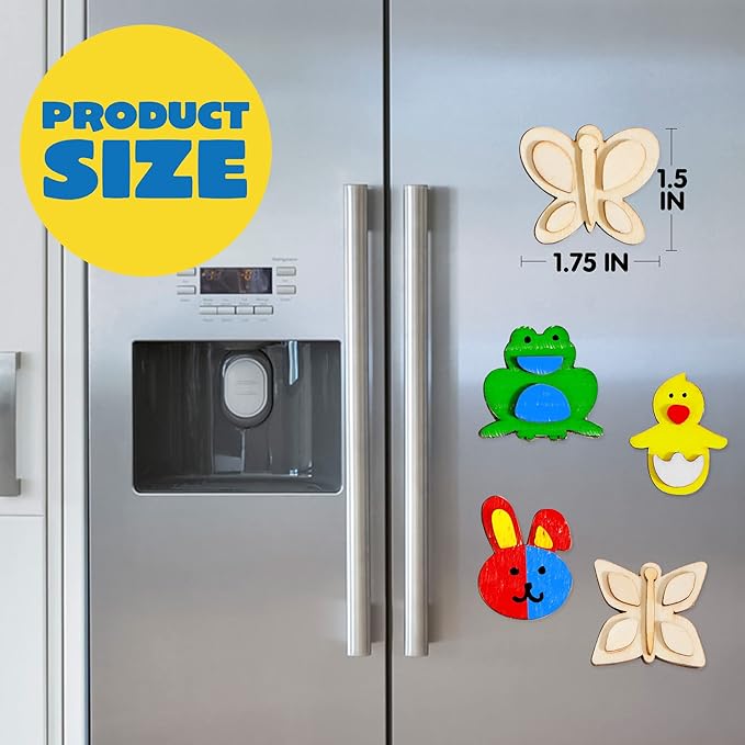 • UNIQUE DESIGN & EASY TO USE. Our 12 pieces of paint your own arts and crafts kit will unleash your kid's creativity. Your kids will learn how to mix paints and express themselves through decorating art by making wooden crafts magnets.