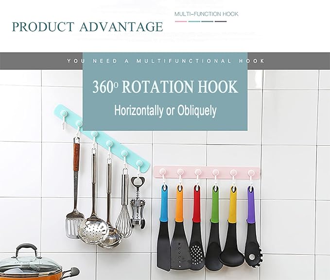 - ◆ Innovative Design: Effortless installation and usage with NO TOOLS, NO SCREWS, and NO HOLES required. Features 6 hooks with 360-degree rotation for customizable placement. Ideal for use in the kitchen, bedroom, foyer, hallway, or office, maximizing space-saving potential