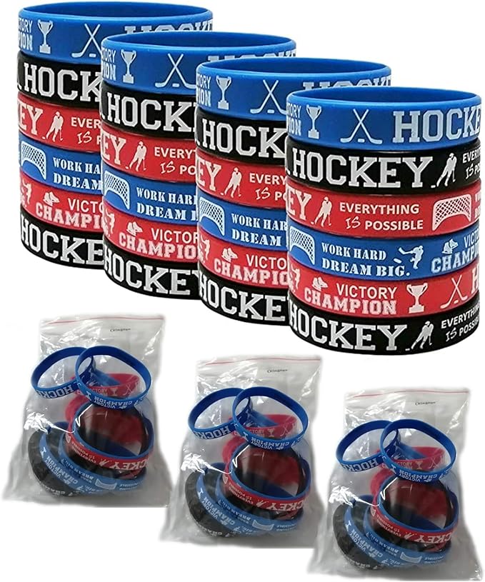 Oringaga 24PCS Hockey Party Motivational Rubber Bracelets, Sports/Hockey Baby Shower Birthday Party Supplies Decorations Gifts Prize Goodie Bag Favors Silicone Wristbands