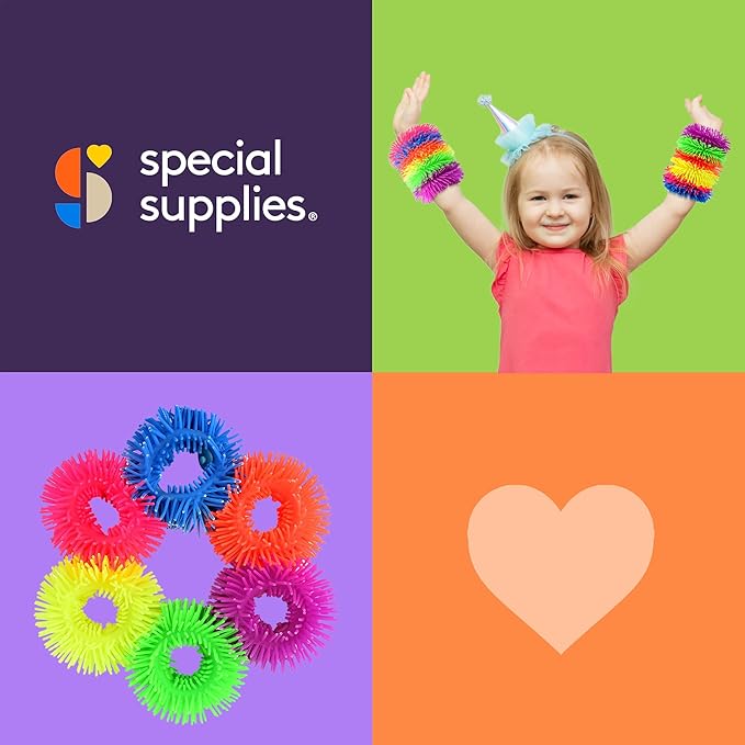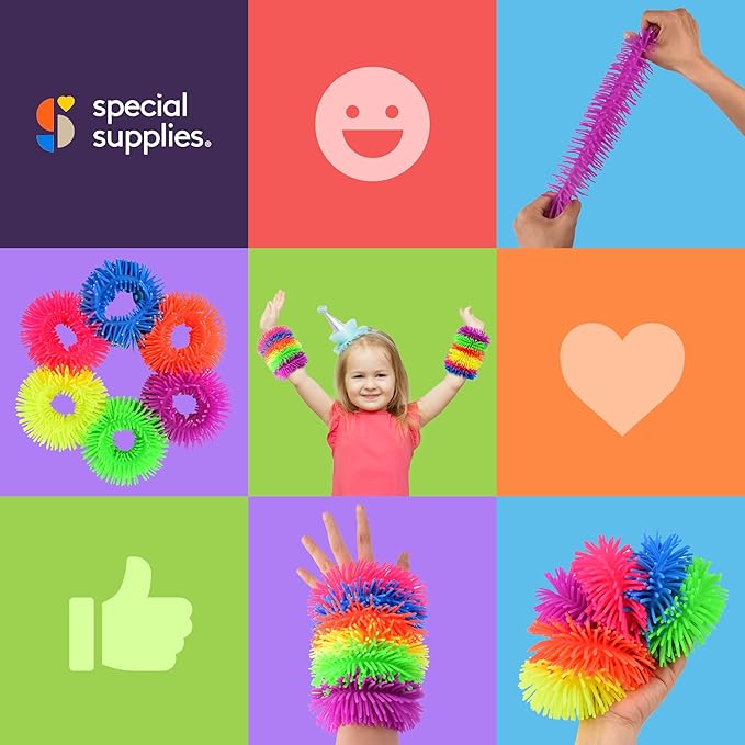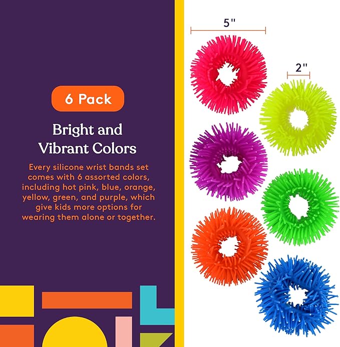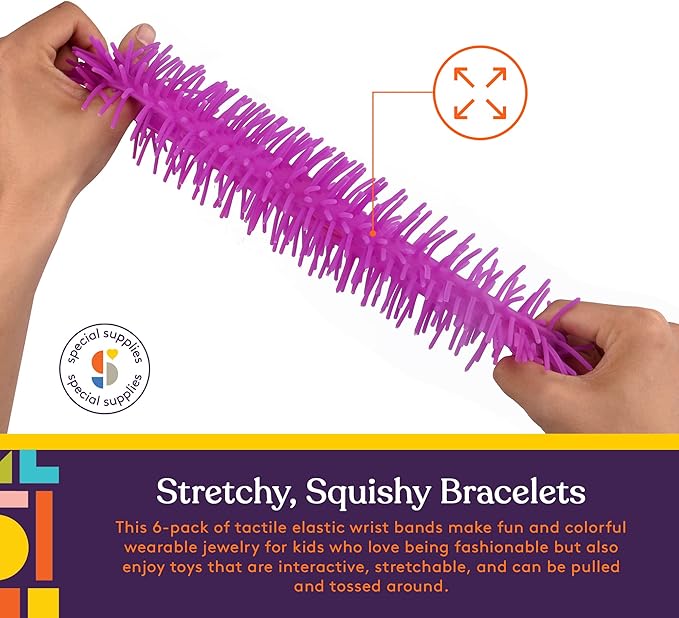 Special Supplies Squishy Fuzzy Band Bracelets for Kids, 6 Pack, Flexible and Stretchy Wearable Sensory Toys, Tactile Silicone Squiggly Touch, Bright and Colorful Wristbands
