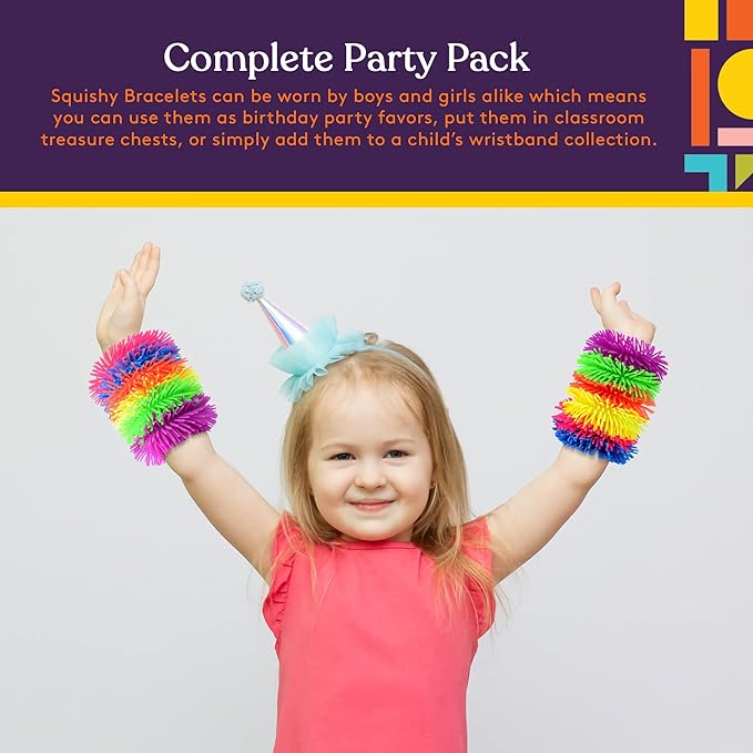 - Complete Party Pack – The six squishy bracelets can be worn by boys and girls alike which means you can use them as birthday party favors, put them in classroom treasure chests, or simply add them to a child’s wrist band collection.