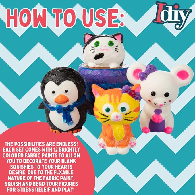 - Our DIY blank animal squishies and 3D fabric paint set are a great way to get creative! Slow rising, soft, and scented - great toy for stress or anxiety relief for kids and adults