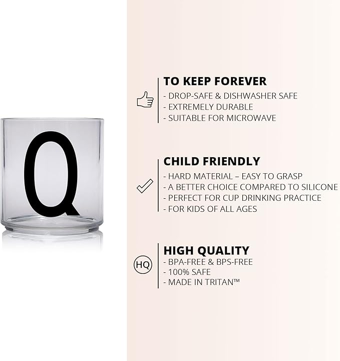 Design Letters Tritan Dinnerware Cups for Kids A-Z 6 Oz| Kids Glass Designed in Denmark for Baby feeding | Toddler Cup for Drinking | Unbreakable Tableware for Baby|Stackable Tumbler Cup BPA/BPS Free