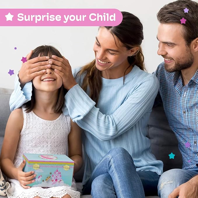 - Captivating Unicorn Theme: Enchant your child with the girls jewelry box adorned with unicorn designs, sparking imagination and providing a lovely decor piece for any room