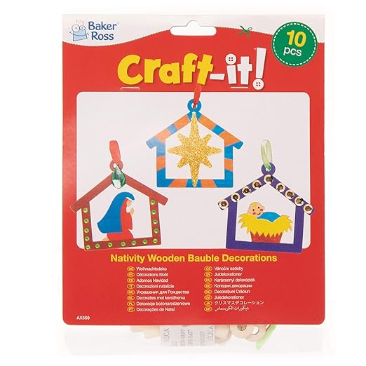 Baker Ross AX559 Nativity Wooden Bauble Decorations - Pack of 10, Christmas Tree Ornaments for Creative Art and Craft Activities to Paint and Decorate